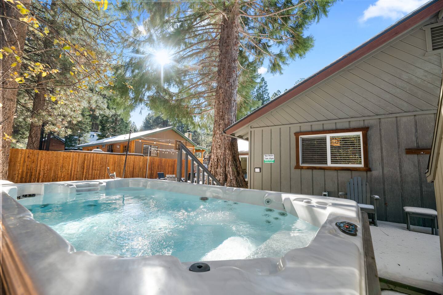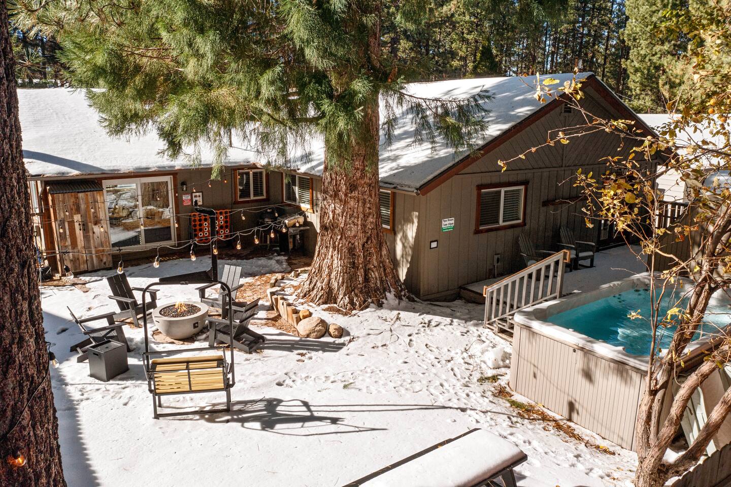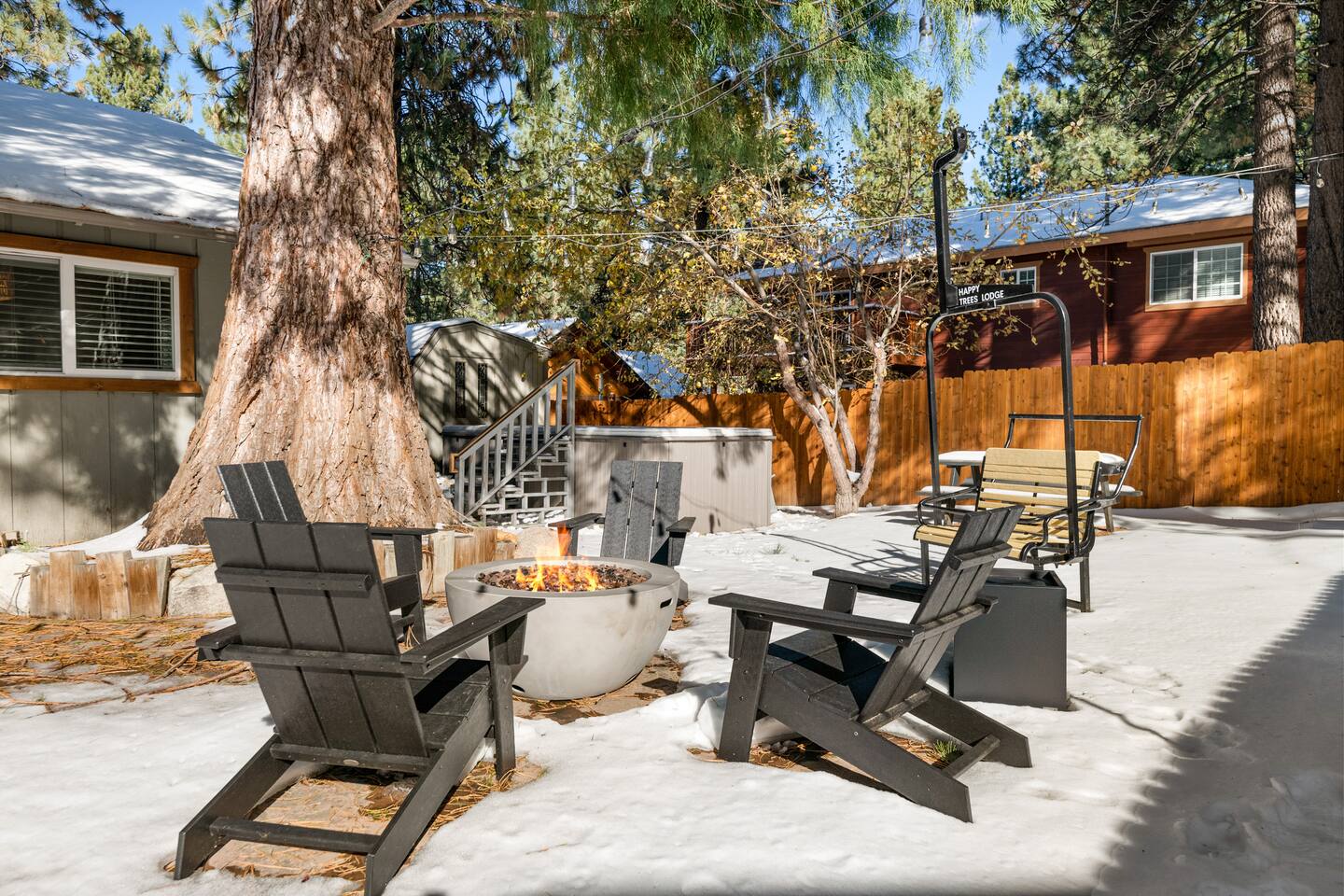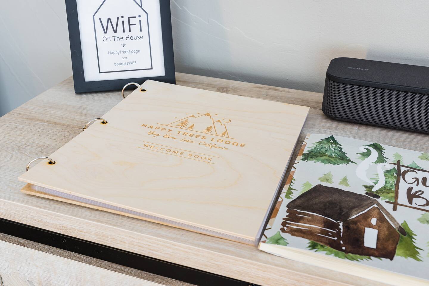 With the cabin surrounded by pine and sequoia trees, and inspired by Bob Ross, we lovingly called it Happy Trees Lodge. Touches of the peaceful painter were added throughout the cabin to create the calm and comfortable setting for our guests. Follow us on IG @happy_trees_lodge for more photos and tours! ------------------- General *Fast 200Mbps Wireless internet with mesh Wifi to provide seamless internet connectivity throughout cabin. *Central heat throughout the cabin controlled by Nest thermostat. *Please note, like most homes in Big Bear this home does not have central AC. *Soft bamboo linens and towels provided with cloud-like comfort for our guests. *Winter Season: 2 space heaters provided for additional comfort to guests. * Summer Season: 1 portable air conditioner, 1 Dyson Pure Cool purifier fans and 2 standard tower fans provided to help keep the cabin cool during the summer time. *Occupancy: Our cabin can accommodate up to 8 adults with a total occupancy of 10. Living Room * A 65" TV with 2.1 channel Sony sound bar / Dolby Digital for movie nights. Amazon Firestick includes complimentary YoutubeTV, Netflix, Disney+ and Hulu. Available for guests to login. *Entertainment console with assortment of books, magazines, and games for our guests that love to read or play. * Combo pool/ping-pong table with bench seating for 6; perfect for guests to sit, hangout, have meals, or play games while sitting next to the fireplace. * Gas burning fireplace controlled by thermostat timer. ------------ Kitchen/Dining Room * Fully stocked with all new dinnerware, utensils, glassware, and quality pots and pans. Spice rack provided. * Instant Pot Pro 10-in-1 pressure cooker/ slow cooker/ sous vide + more, rice cooker, Ninja blender, electric kettle, toaster oven. * Bakeware- baking sheets, baking trays, Pyrex, hand mixer, pie pan, muffin pan, loaf pan, and more. * Gas stove, microwave, and dishwasher. * Dining room table with seating for 8. * Keurig K-cup and full drip coffee maker, mugs, starter coffee pods, ground coffee, sugar, creamer, tea, and hot cocoa provided. * Pre-stocked with paper towels, dish soap, dishwasher tabs, sponges, and garbage bags. * Kids safe utensils and dinnerware also provided. ------------ Bonus Room * 65 in. Smart TV with Amazon Firestick includes complimentary YoutubeTV. Netflix, Disney+ and Hulu. Available for guests to login. * 2 player arcade console with 300 games built in. * Boss Toss bean bag toss game. * Assorted board games and puzzles. * Queen sofa bed (sleeps up to 2). ------------ Garage /Game Room * 2 player arcade style 7 foot long air hockey table. * 2 player double shootout basketball. * 48" foosball table. * 84 Inch Roll And Score Skeeball. * 2 person snow sled and 1 person saucer disc snow sled for outdoor play. * Hooks to hang snowboards and skis. * Table and bar stool seating for 4. ------------ Bathrooms *Two full bathrooms (both bathrooms with shower and tub)— one in the primary bedroom, one in the hallway. * Shampoo, conditioner, body wash, hand soap, lotion and hairdryers are provided in all bathrooms. * Step stool provided in hallway bathroom. ---------------- Bedroom #1 (Primary bedroom) * Traditional king bed. * Rollaway twin Bed (Can be moved to any room, please put back in primary's closet at end of stay). * Double French door leading out to hot tub and deck area. * Walk in closet equipped with hangers and luggage rack. * Full length mirror for getting ready in the morning. * Desk and chair for home office setup. ---------------- Bedroom #2 * Queen bed. * Closet equipped with hangers and luggage rack. * Full length mirror for getting ready in the morning. --------------------- Bedroom # 3 / Bunk-bed room (twin over full) – 2 beds (sleeps up to 3) * Bed 1: Top bunk - twin * Bed 2: Bottom bunk - full * The top bunk can hold 160 pounds max. * Toys include play tent, kitchen play set, rocking horse, children's books, and more. -------------- Laundry * Laundry closet attached to the bonus room, with full-size washer and dryer. * Laundry pods, fabric sheets, and stain remover available for use. * Ironing board, iron, drying rack, dustpan, broom, swifter, and toilet plunger available. -------------- Backyard features: * Privacy Fence around the entire backyard. * A Vision Kamado charcoal grill. * A Charbroil 4 burner propane gas grill with 1 side burner. * Gas lighter and ThermalPro thermometer in kitchen for the grill master vacationer. * Charcoal starter, charcoal, additional propane tank available to guests in small shed near patio sliding door. * Stargaze from the 12 seat jacuzzi swim/hot tub that measures 11' x 13'. * Natural gas fire pit with wrap-around Adirondack seating for 4. * Wooden picnic 6- seater wood bench for outdoor dining. * Newly refurbished ski lift bench- photo moment for you and your family. * 2 Adirondack rocking chairs and table on deck near hot tub. * Corn hole toss and giant Connect 4 games. Frontyard Area: * Cabin located on a secluded street with minimal traffic. * RV Parking on side of driveway. * Level 2 50A J1772 Electric Vehicle EV charger available to guests to charge for free. We provide for babies/toddlers: *Booster chair *Kids plates, bowls, cups, and utensils. *Playmat *Diaper changing pad *Assorted kids books and games The Happy Trees Lodge is family and kid-friendly. We would love for you and your children or friends to make everlasting memories at our cabin. ----- Be sure to follow IG @happy_trees_lodge for updates and tag us during your visit. ----- Guests will have access to the entire home and garage, with exception to the outside storage shed.