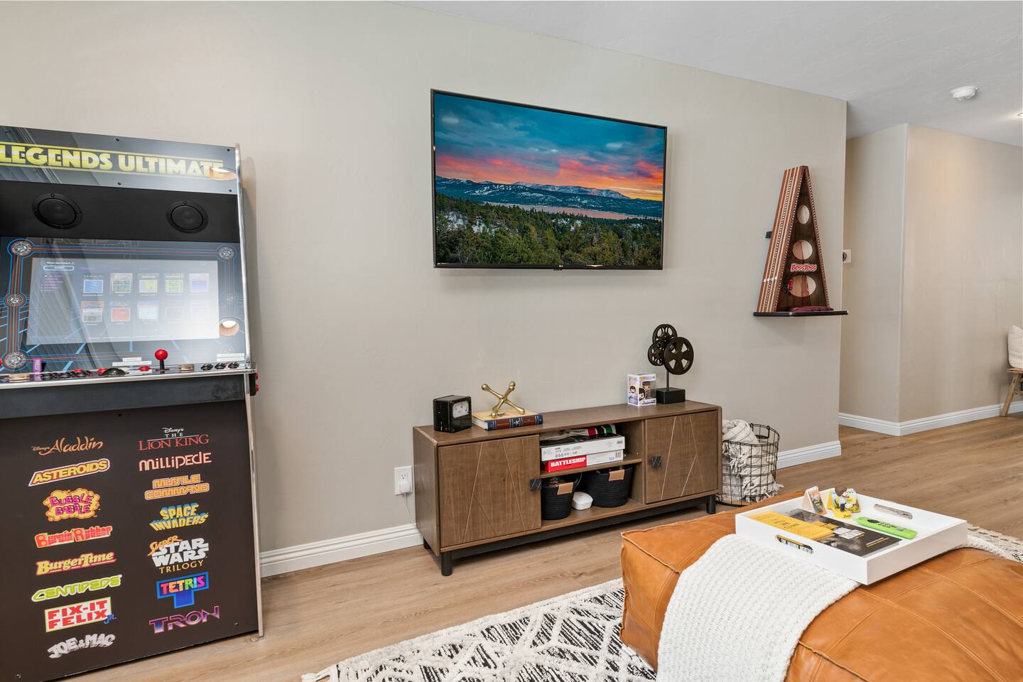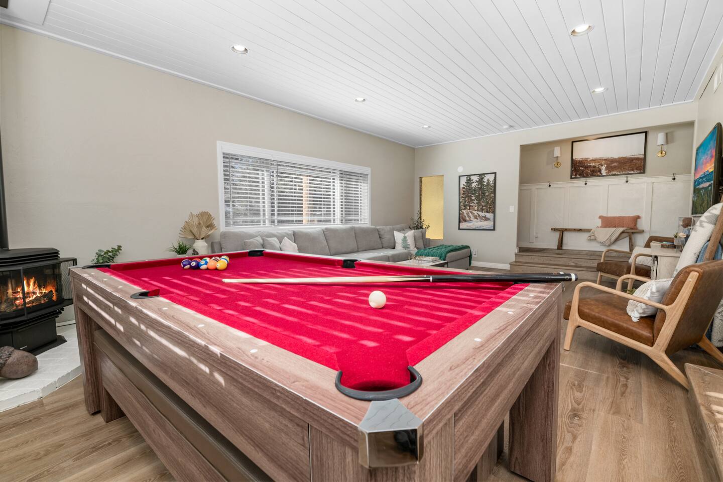 Fully remodeled | 5 min drive to Village & Lake | 12 min walk to Snow Summit | Game room & XL spa